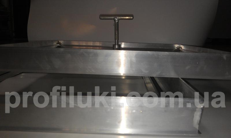 Основной особенностью напольного люка тип «ЛЁГКИЙ» является материал, из которого он изготовлен. Вся конструкция люка цельнометаллическая сварная, выполнена из алюминиевого профиля толщиной 3мм. Этот люк является самым лёгким из всех напольных невидимых люков с заполняемой крышкой.