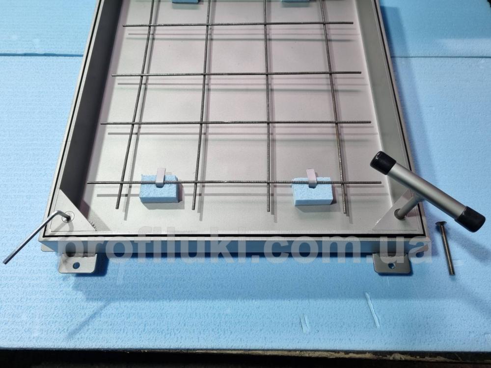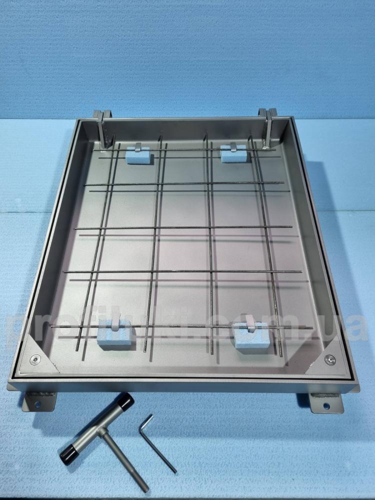 Люка невидимка под брусчатку из нержавеющей стали толщиной 5 мм и глубиной крышки 55 мм.