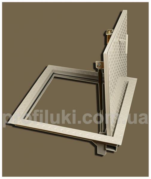 В ряде случаев, из-за технических, гигиенических, конструктивных или других условий, нет возможности установить в пол невидимый ревизионный люк. Тогда мы предлагаем к установке видимый напольный люк типа «Эконом Плюс» оборудованный газовыми амортизаторами.