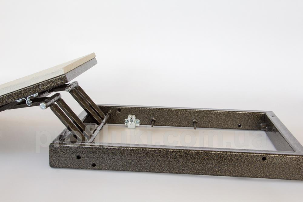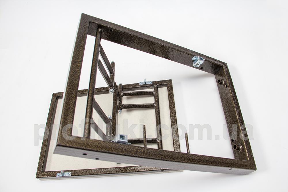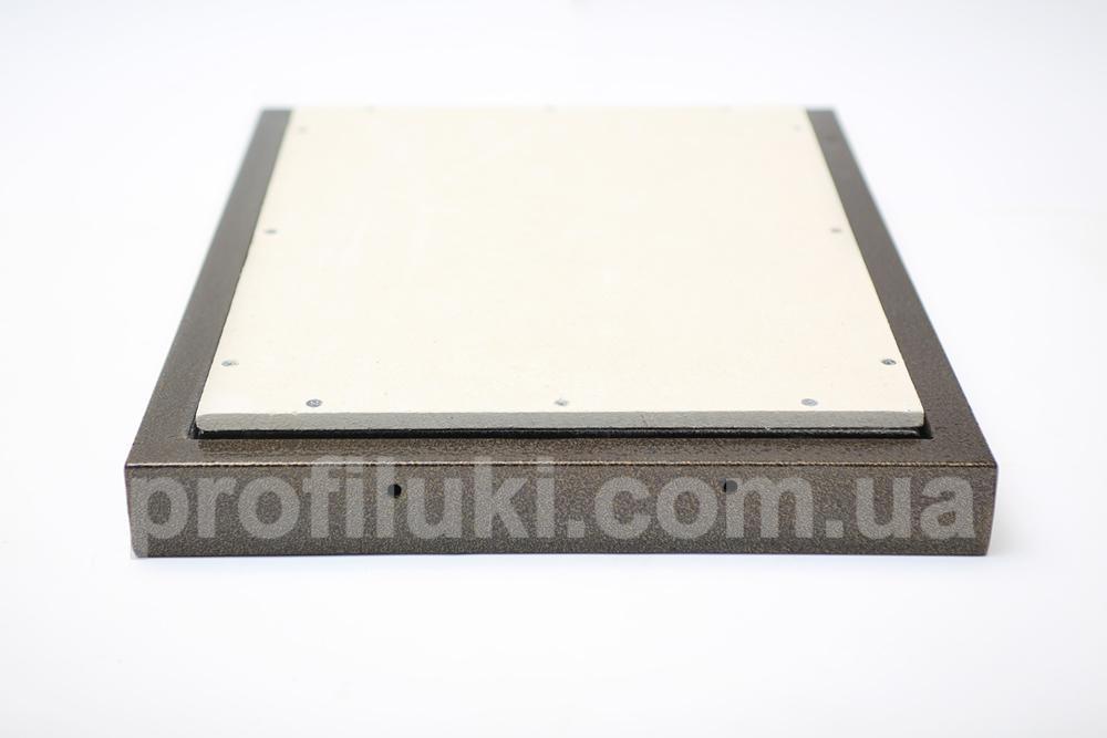Каркас ревизионного люка типа «ФР-Д» выполнен из стальной трубы прямоугольного сечения 20х40 мм. Все металлические части люка окрашены порошковой краской и надёжно защищены от ржавения и коррозии. Люк снабжён сдвижными двойными петлями, способными нести максимальную нагрузку.