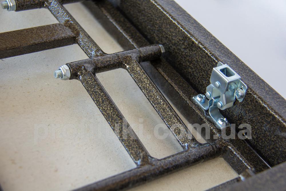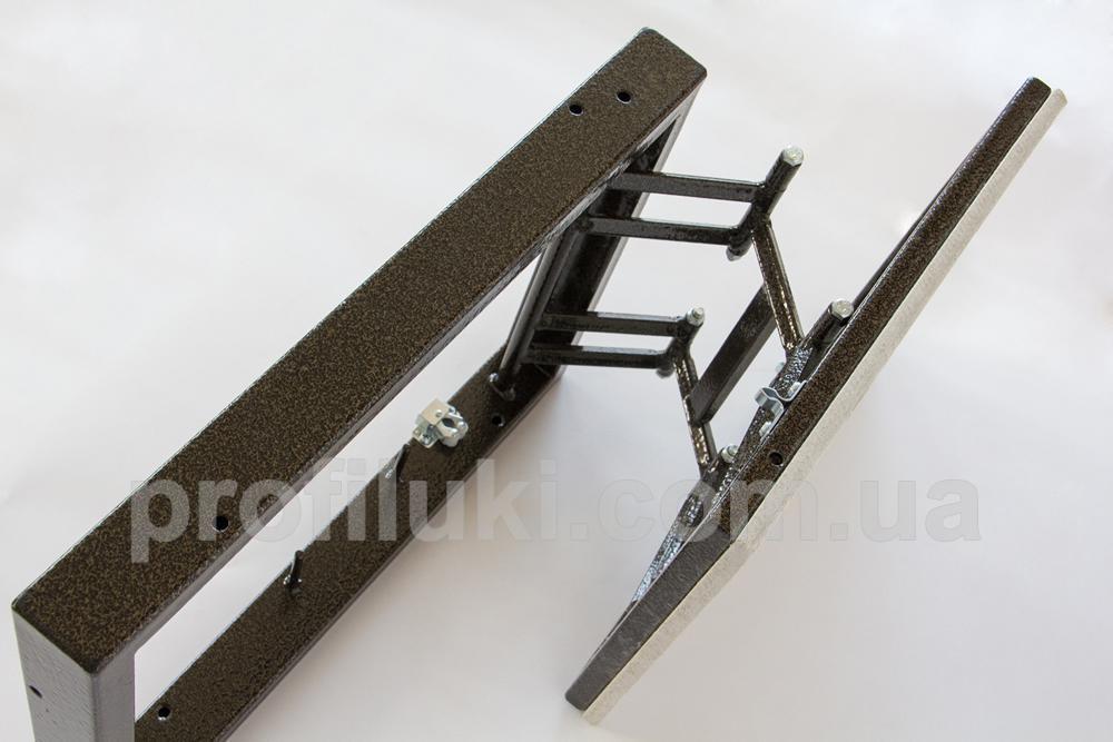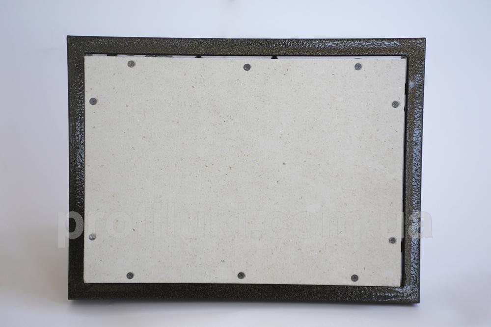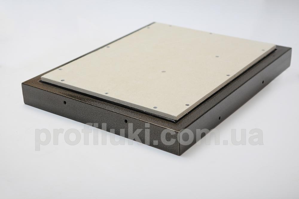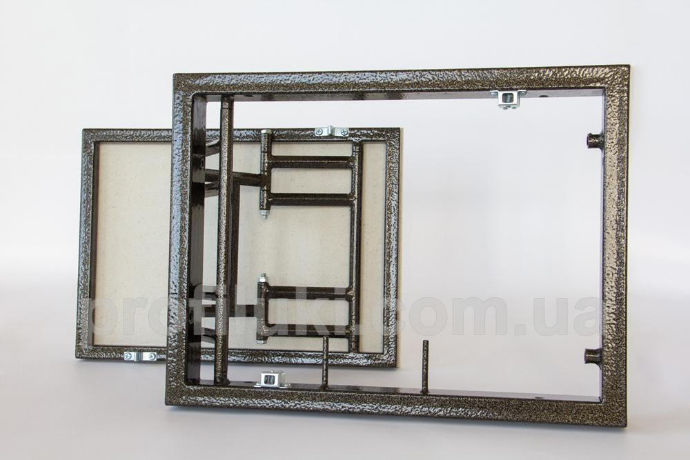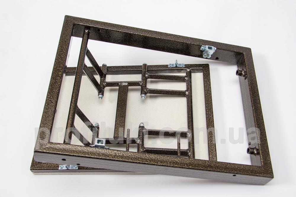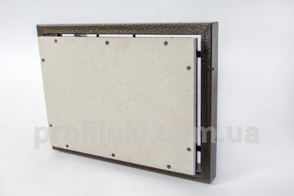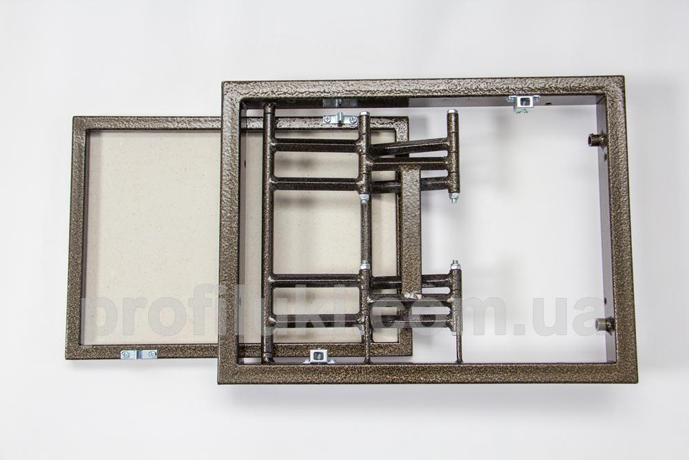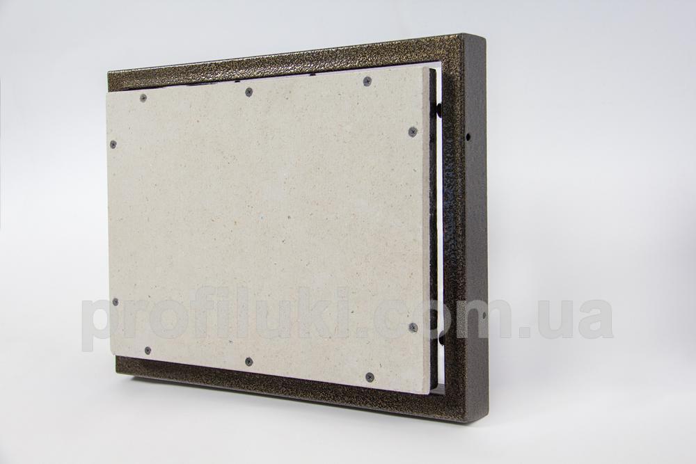 Каркас ревизионного люка типа «ФР-Д» выполнен из стальной трубы прямоугольного сечения 20х40 мм. Все металлические части люка окрашены порошковой краской и надёжно защищены от ржавения и коррозии. Люк снабжён сдвижными двойными петлями, способными нести максимальную нагрузку.