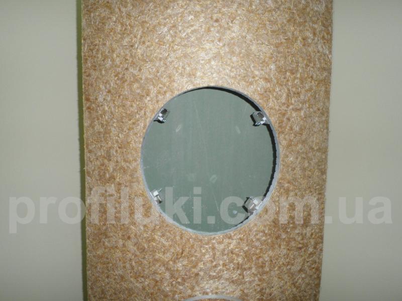 Этот тип люков-невидимок разработан специально для неровных поверхностей (радиусные стены, колонны, объёмные или криволинейные элементы и проч.) или для круглых либо овальных проёмов (см. фото), которые выполнены из гипсокартонных плит или других, аналогичных по характеристикам, плит. Финишная отделка дверцы люка этого типа выполняется только под покраску или обои.